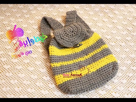 فيديو شرح طريقة عمل شنطة ظهر بخيط التيشرت - الكليم اطفال الخطوات بالعربى كروشية Crochet Backpack with T-Shirt Yarn Steps in Arabic crochet كروشيه