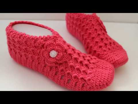 فيديو شرح طريقة عمل سليبر بغرزة جميلة و سهله نسائي الخطوات بالكروشية crochet slippers كروشيه